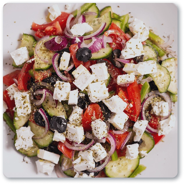 Kombinacija svježeg i pečenog povrća uz sočnu piletinu i aromatični feta sir.