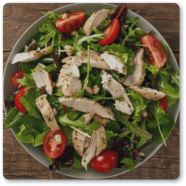 Svježa i lagana salata s nježnom piletinom i hrskavim dodacima u bogatom umaku.